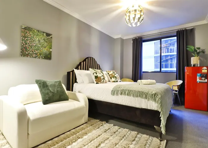 Das 1-Zimmer-Apartment Vintage Charm Oasis - Central丨calm丨convenience Sydney liegt in unmittelbarer Nähe von verschiedenen Sehenswürdigkeiten der Gegend: Market City befindet sich unter anderem 6 Minuten Gehweg von hier entfernt.